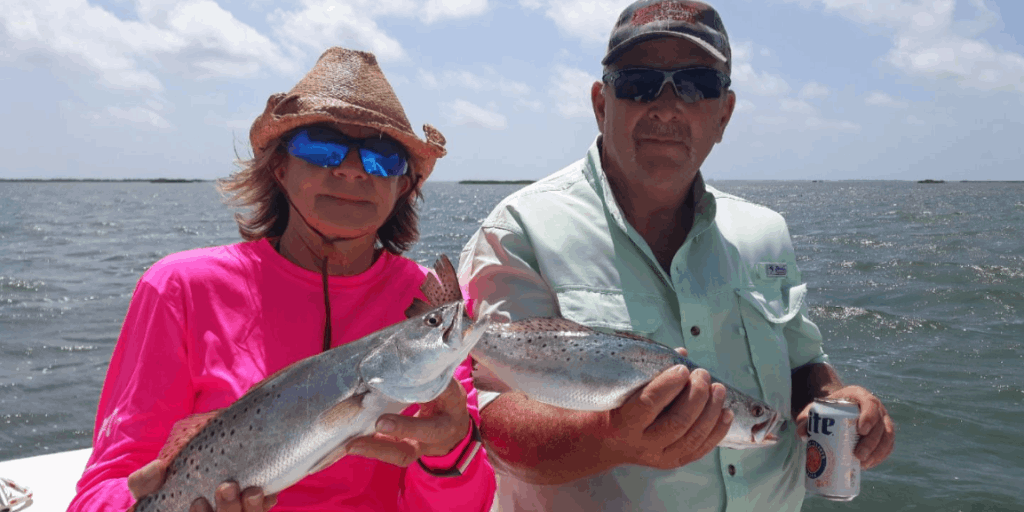 Sea Trout, also called Speckled Trout, are a favorite among Corpus Christi anglers. These silvery, spotted fish usually run 14 to 24 inches, with some trophy fish pushing 5 pounds or more. You'll find them in grass flats and shallow waters, especially at night. They're known for their delicate, mild flavor and tender flesh. Spring and fall are prime seasons, but you can catch them year-round. Sea Trout are aggressive feeders and put up a good fight, making them fun for all skill levels. They love live shrimp, but artificial lures like jerk baits and topwater plugs work great too. Here's a tip: try drifting grass flats with a popping cork rig – it's deadly effective. Remember, these fish are sensitive to cold, so winter fishing is best in deeper channels where they school up.